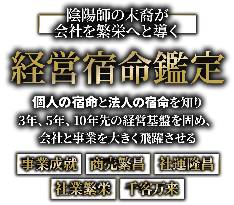 生年月日から経営者の宿命と法人登記年月日から法人の宿命を鑑定します。